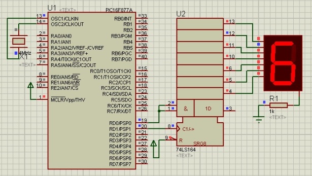 unsigned short cnt, i; //declaracion de variables const unsigned short digitos[] = { 0x3F, 0x06, 0x5B, 0x4F, 0x66, 0x6D, 0x7D, 0x07, 0x7F, 0x6F }; void Display(unsigned char num){ //funcion para controlar el shift register for (i = 0; i < 8; i++){ //ciclo de 8 conteos PORTD.F0 = num >> i; //bit de dato serial PORTD.F1 = 1; //pone en alto el bit de clock PORTD.F1 = 0; //pone en bajo el bit de clock } } void main() { TRISD = 0xFC; //Asigna 2 bits de salida PORTD = 0; cnt = 0; //inicializa cnt a 0 while(1) { //bucle infinito if(cnt > 9) //condicion de reinicio cnt = 0; //reinicia el contador Display(digitos[cnt]); //envia el valor de display Delay_ms(1000); //espera 500 milisegundos cnt++; //incrementa el valor del contador } }