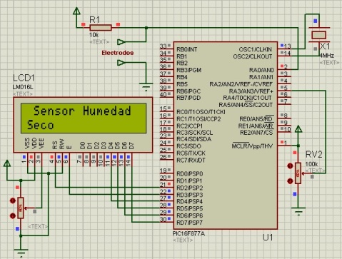 bit flag; //Pines de salida para el LCD sbit LCD_RS at RD2_bit; sbit LCD_EN at RD3_bit; sbit LCD_D7 at RD7_bit; sbit LCD_D6 at RD6_bit; sbit LCD_D5 at RD5_bit; sbit LCD_D4 at RD4_bit; //Bits de configuración TRIS sbit LCD_RS_Direction at TRISD2_bit; sbit LCD_EN_Direction at TRISD3_bit; sbit LCD_D7_Direction at TRISD7_bit; sbit LCD_D6_Direction at TRISD6_bit; sbit LCD_D5_Direction at TRISD5_bit; sbit LCD_D4_Direction at TRISD4_bit; void main() { CMCON = 0x02; //configuracion del comparador Lcd_Init(); //Inicialización del LCD. Lcd_Cmd(_LCD_CURSOR_OFF); //Se apaga el cursor. Lcd_Out(1, 1," Sensor Humedad "); //Se imprime texto. Lcd_Out(2, 1,"Seco "); flag = 0; while(1){ //Bucle infinito. if(CMCON.C1OUT == 1 && flag == 0){ Lcd_Out(2, 1,"Humedo"); flag = 1; } if(CMCON.C1OUT == 0 && flag == 1){ Lcd_Out(2, 1,"Seco "); flag = 0; } } }