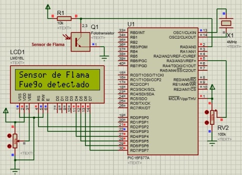 bit flag; //Pines de salida para el LCD sbit LCD_RS at RD2_bit; sbit LCD_EN at RD3_bit; sbit LCD_D7 at RD7_bit; sbit LCD_D6 at RD6_bit; sbit LCD_D5 at RD5_bit; sbit LCD_D4 at RD4_bit; //Bits de configuración TRIS sbit LCD_RS_Direction at TRISD2_bit; sbit LCD_EN_Direction at TRISD3_bit; sbit LCD_D7_Direction at TRISD7_bit; sbit LCD_D6_Direction at TRISD6_bit; sbit LCD_D5_Direction at TRISD5_bit; sbit LCD_D4_Direction at TRISD4_bit; void main() { CMCON = 0x02; //configuracion del comparador Lcd_Init(); //Inicialización del LCD. Lcd_Cmd(_LCD_CURSOR_OFF); //Se apaga el cursor. Lcd_Out(1, 1,"Sensor de Flama"); //Se imprime texto. flag = 0; while(1){ //Bucle infinito. if(CMCON.C1OUT == 1 && flag == 0){ Lcd_Out(2, 1,"Fuego detectado"); flag = 1; } if(CMCON.C1OUT == 0 && flag == 1){ Lcd_Out(2, 1," "); flag = 0; } } }
