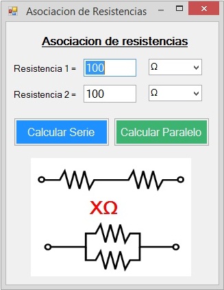 using System; using System.Collections.Generic; using System.ComponentModel; using System.Data; using System.Drawing; using System.Text; using System.Windows.Forms; namespace Asociacion_de_Resistencias_01 { public partial class Form1 : Form { public Form1() { InitializeComponent(); } double r1, r2; uint a = 0; uint b = 0; double resultado; uint[] multiplos = {1, 1000, 1000000}; string cadena; private void Form1_Load(object sender, EventArgs e) { comboBox1.SelectedIndex = 0; comboBox2.SelectedIndex = 0; } private void calcular(string tipo) { r1 = Convert.ToDouble(textBox1.Text); r2 = Convert.ToDouble(textBox2.Text); r1 = r1 * multiplos[a]; r2 = r2 * multiplos[b]; if (tipo == "serie") resultado = (r1 + r2); else resultado = ((r1 * r2) / (r1 + r2)); if (resultado >= 1000000) { resultado = resultado / 1000000; cadena = resultado.ToString("N1") + "MΩ"; } else { if (resultado >= 1000) { resultado = resultado / 1000; cadena = resultado.ToString("N1") + "kΩ"; } else { cadena = resultado.ToString("N2") + "Ω"; } } lbl_resultado.Text = cadena; } private void btn_serie_Click(object sender, EventArgs e) { calcular("serie"); } private void btn_paralelo_Click(object sender, EventArgs e) { calcular("paralelo"); } private void comboBox1_SelectedIndexChanged(object sender, EventArgs e) { a = (uint)comboBox1.SelectedIndex; } private void comboBox2_SelectedIndexChanged(object sender, EventArgs e) { b = (uint)comboBox2.SelectedIndex; } } }