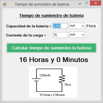 using System; using System.Collections.Generic; using System.ComponentModel; using System.Data; using System.Drawing; using System.Text; using System.Windows.Forms; namespace Suministro_Bateria_01 { public partial class Form1 : Form { public Form1() { InitializeComponent(); } double Ib, Ic; int a = 0; int b = 0; double tiempo, residuo; double[] multiplos = { 0.000000001, 0.000001, 0.001, 1 }; string cadena; private void Form1_Load(object sender, EventArgs e) { cmbBateria.SelectedIndex = 2; cmbCarga.SelectedIndex = 2; } private void calcular() { Ib = Ib * multiplos[a]; Ic = Ic * multiplos[b]; tiempo = Ib / Ic; if (tiempo >= 8640) { tiempo = tiempo / 8640; residuo = tiempo % 1; cadena = Math.Floor(tiempo) + " AƱos y "; cadena += Math.Round((residuo * 12),0) + " meses"; } else { if (tiempo >= 720) { tiempo = tiempo / 720; residuo = tiempo % 1; cadena = Math.Floor(tiempo) + " Meses y "; cadena += Math.Round((residuo * 30),0) + " dias"; } else { if (tiempo >= 24) { tiempo = tiempo / 24; residuo = tiempo % 1; cadena = Math.Floor(tiempo) + " Dias y "; cadena += Math.Round((residuo * 24),0) + " Horas"; } else { residuo = tiempo % 1; cadena = Math.Floor(tiempo) + " Horas y "; cadena += Math.Round((residuo * 60),0) + " Minutos"; } } } lblTiempo.Text = cadena; lblBateria.Text = txtBateria.Text + cmbBateria.Text + "h"; lblCarga.Text = txtCarga.Text + cmbCarga.Text; } private void cmbBateria_SelectedIndexChanged(object sender, EventArgs e) { a = cmbBateria.SelectedIndex; } private void cmbCarga_SelectedIndexChanged(object sender, EventArgs e) { b = cmbCarga.SelectedIndex; } private void button1_Click(object sender, EventArgs e) { Ib = Convert.ToDouble(txtBateria.Text); Ic = Convert.ToDouble(txtCarga.Text); calcular(); lblSalida.Text = lblTiempo.Text; } } }