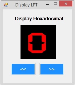 using System; using System.Collections.Generic; using System.ComponentModel; using System.Data; using System.Drawing; using System.Text; using System.Windows.Forms; using System.Runtime.InteropServices; namespace Display_hexadecimal_LPT_01 { public partial class Form1 : Form { class ControlPort { [DllImport("inpout32.dll", EntryPoint = "Out32")] public static extern void Output(int adress, int value); [DllImport("inpout32.dll", EntryPoint = "Inp32")] public static extern char Input(int adress); } public Form1() { InitializeComponent(); } byte cnt = 0; byte[] segmentos = { 63,6,91,79,102,109,125,7,127,111,119,124,57,94,121,113 }; string[] monitor = { "0","1","2","3","4","5","6","7","8","9","A","B","C","D","E","F" }; private void btnMas_Click(object sender, EventArgs e) { if (cnt < 15) cnt++; lblDisplay.Text = monitor[cnt]; ControlPort.Output(0x378, segmentos[cnt]); } private void btnMenos_Click(object sender, EventArgs e) { if (cnt > 0) cnt--; lblDisplay.Text = monitor[cnt]; ControlPort.Output(0x378, segmentos[cnt]); } private void Form1_Load(object sender, EventArgs e) { ControlPort.Output(0x378, segmentos[cnt]); } } }