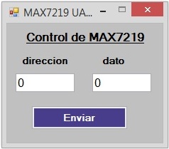 using System; using System.Collections.Generic; using System.ComponentModel; using System.Data; using System.Drawing; using System.Text; using System.Windows.Forms; using System.Threading; namespace MAX7219_UART_01 { public partial class Form1 : Form { public Form1() { InitializeComponent(); } byte[] buffer = { 4 }; private void Form1_Load(object sender, EventArgs e) { serialPort1.Open(); serialPort1.Write(buffer, 0, 1); } private void btnEnviar_Click(object sender, EventArgs e) { int dir, data; dir = Convert.ToInt32(txtDir.Text); data = Convert.ToInt32(txtData.Text); write_max72((byte)dir, (byte)data); } private void write_max72(byte address, byte dato) { int num, a, i; double b = 0; int com; buffer[0] = 0; serialPort1.Write(buffer, 0, 1); //cs 0 num = (address << 8) + dato; for (i = 15; i > 0; i--) { a = (num & 0x0001); b = b + (Math.Pow(2, i) * a); num = num >> 1; } for (i = 0; i < 16; i++) { com = ((int)b & 0x01); buffer[0] = (byte)com; serialPort1.Write(buffer, 0, 1); //data com += 2; buffer[0] = (byte)com; serialPort1.Write(buffer, 0, 1); //sck High com -= 2; buffer[0] = (byte)com; serialPort1.Write(buffer, 0, 1); //sck low b = (int)((int)b >> 1); } buffer[0] = 4; serialPort1.Write(buffer, 0, 1); //cs 1 Thread.Sleep(1); } private void Form1_FormClosing(object sender, FormClosingEventArgs e) { serialPort1.Close(); } } }