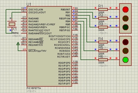 int tiempo1 = 6000; int tiempo2 = 2000; void main(void) { TRISB = 0b11000000; while(1){ PORTB = 0b00100001; Vdelay_ms(tiempo1); PORTB = 0b00010001; Vdelay_ms(tiempo2); PORTB = 0b00001100; Vdelay_ms(tiempo1); PORTB = 0b00001010; Vdelay_ms(tiempo2); } }