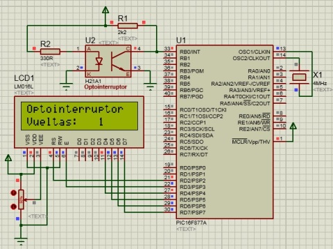 //Pines de salida para el LCD sbit LCD_RS at RD2_bit; sbit LCD_EN at RD3_bit; sbit LCD_D7 at RD7_bit; sbit LCD_D6 at RD6_bit; sbit LCD_D5 at RD5_bit; sbit LCD_D4 at RD4_bit; //Bits de configuración TRIS sbit LCD_RS_Direction at TRISD2_bit; sbit LCD_EN_Direction at TRISD3_bit; sbit LCD_D7_Direction at TRISD7_bit; sbit LCD_D6_Direction at TRISD6_bit; sbit LCD_D5_Direction at TRISD5_bit; sbit LCD_D4_Direction at TRISD4_bit; void main() { unsigned short cnt = 0; char texto[4]; TRISB.F0 = 1; Lcd_Init(); //Inicialización del LCD. Lcd_Cmd(_LCD_CURSOR_OFF); //Se apaga el cursor. Lcd_Out(1, 1,"Optointerruptor"); //Se imprime texto. Lcd_Out(2, 1,"Vueltas: 0"); while(1){ //Bucle infinito. if(PORTB.F0 == 1){ cnt++; ByteToStr(cnt,texto); Lcd_Out(2, 10,texto); while(PORTB.F0 == 1); } } }
