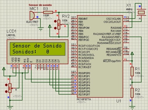 unsigned short cnt = 0; char texto[4]; //Pines de salida para el LCD sbit LCD_RS at RD2_bit; sbit LCD_EN at RD3_bit; sbit LCD_D7 at RD7_bit; sbit LCD_D6 at RD6_bit; sbit LCD_D5 at RD5_bit; sbit LCD_D4 at RD4_bit; //Bits de configuración TRIS sbit LCD_RS_Direction at TRISD2_bit; sbit LCD_EN_Direction at TRISD3_bit; sbit LCD_D7_Direction at TRISD7_bit; sbit LCD_D6_Direction at TRISD6_bit; sbit LCD_D5_Direction at TRISD5_bit; sbit LCD_D4_Direction at TRISD4_bit; void main() { CMCON = 2; //Configuracion del comparador Lcd_Init(); //Inicialización del LCD. Lcd_Cmd(_LCD_CURSOR_OFF); //Se apaga el cursor. Lcd_Out(1, 1,"Sensor de Sonido"); //Se imprime texto. Lcd_Out(2, 1,"Sonidos: 0"); while(1){ //Bucle infinito. if(CMCON.C1OUT == 1){ //Detecta el estado alto del comparador cnt++; //incrementa el contador en una unidad ByteToStr(cnt,texto); Lcd_Out(2, 10,texto); while(CMCON.C1OUT == 1); } } }