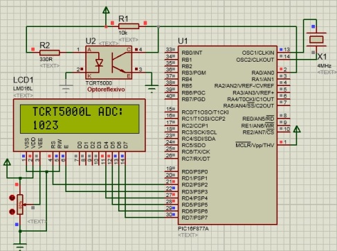 //Pines de salida para el LCD sbit LCD_RS at RD2_bit; sbit LCD_EN at RD3_bit; sbit LCD_D7 at RD7_bit; sbit LCD_D6 at RD6_bit; sbit LCD_D5 at RD5_bit; sbit LCD_D4 at RD4_bit; //Bits de configuración TRIS sbit LCD_RS_Direction at TRISD2_bit; sbit LCD_EN_Direction at TRISD3_bit; sbit LCD_D7_Direction at TRISD7_bit; sbit LCD_D6_Direction at TRISD6_bit; sbit LCD_D5_Direction at TRISD5_bit; sbit LCD_D4_Direction at TRISD4_bit; void main() { unsigned int Radc; //Declaración de variables. char Text[6]; ADCON0.ADON = 1; // A/D converter module is powered up ADCON1 = 0x8E; //configura AN0 como analogico Lcd_Init(); //Inicialización del LCD. Lcd_Cmd(_LCD_CURSOR_OFF); //Se apaga el cursor. Lcd_Out(1, 1," TCRT5000L ADC: "); //Se imprime texto. while(1){ //Bucle infinito. Radc=ADC_Read(0); //Lectura del canal análogo. WordToStr( Radc, Text ); //Se convierte el valor int, en cadena de texto. Lcd_Out( 2, 1, Text ); //Se imprime la lectura del sensor. delay_ms(800); //Retardo de 800m segundos. } }