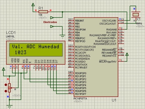 //Pines de salida para el LCD sbit LCD_RS at RD2_bit; sbit LCD_EN at RD3_bit; sbit LCD_D7 at RD7_bit; sbit LCD_D6 at RD6_bit; sbit LCD_D5 at RD5_bit; sbit LCD_D4 at RD4_bit; //Bits de configuración TRIS sbit LCD_RS_Direction at TRISD2_bit; sbit LCD_EN_Direction at TRISD3_bit; sbit LCD_D7_Direction at TRISD7_bit; sbit LCD_D6_Direction at TRISD6_bit; sbit LCD_D5_Direction at TRISD5_bit; sbit LCD_D4_Direction at TRISD4_bit; void main() { unsigned int Radc; //Declaración de variables. char Text[6]; ADCON0.ADON = 1; // A/D converter module is powered up ADCON1 = 0x8E; //configura AN0 como analogico Lcd_Init(); //Inicialización del LCD. Lcd_Cmd(_LCD_CURSOR_OFF); //Se apaga el cursor. Lcd_Out(1, 1,"Val. ADC Humedad"); //Se imprime texto. while(1){ //Bucle infinito. Radc=ADC_Read(0); //Lectura del canal análogo. WordToStr( Radc, Text ); //Se convierte el valor int, en cadena de texto. Lcd_Out( 2, 1, Text ); //Se imprime la lectura del sensor. delay_ms(1000); //Retardo de 1000m segundos. } }