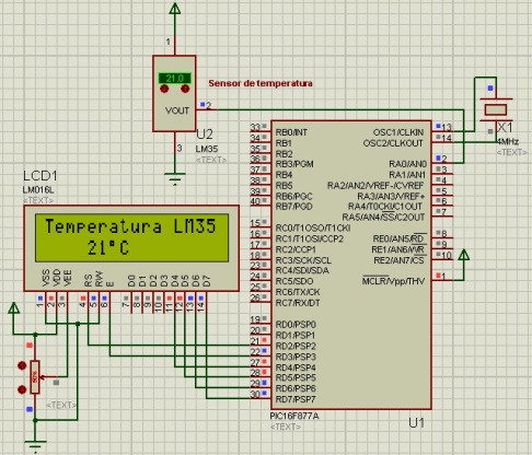 //Pines de salida para el LCD sbit LCD_RS at RD2_bit; sbit LCD_EN at RD3_bit; sbit LCD_D7 at RD7_bit; sbit LCD_D6 at RD6_bit; sbit LCD_D5 at RD5_bit; sbit LCD_D4 at RD4_bit; //Bits de configuración TRIS sbit LCD_RS_Direction at TRISD2_bit; sbit LCD_EN_Direction at TRISD3_bit; sbit LCD_D7_Direction at TRISD7_bit; sbit LCD_D6_Direction at TRISD6_bit; sbit LCD_D5_Direction at TRISD5_bit; sbit LCD_D4_Direction at TRISD4_bit; void main() { float Tem; //Declaración de variables. char Text[7]; unsigned int Radc, TemI; Lcd_Init(); //Inicio del LCD. Lcd_Cmd(_LCD_CURSOR_OFF); //Borrado del cursor. Lcd_Out( 1, 1, "Temperatura LM35"); //Impresión de texto. while(1){ //Bucle infinito. Radc = ADC_Read(0); //Lectura del canal 0 del ADC. Tem = 0.489 * Radc; //Uso de la ecuación (13.5). TemI = Tem; //Se convierte el resultado a un número entero. IntToStr( TemI, Text ); //Se convierte el número entero a una cadena de caracteres. Lcd_Out( 2, 1, Text); //Se imprime el resultado. Lcd_Chr_Cp(0xDF); Lcd_Chr_Cp('C'); delay_ms(500); //Retardo de 500m segundos. } }